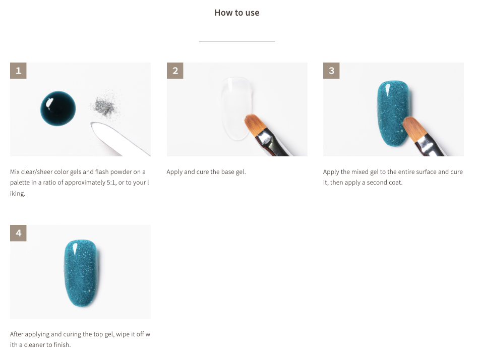 This powder lets you create your own original flash gel simply by mixing it with colored gel.