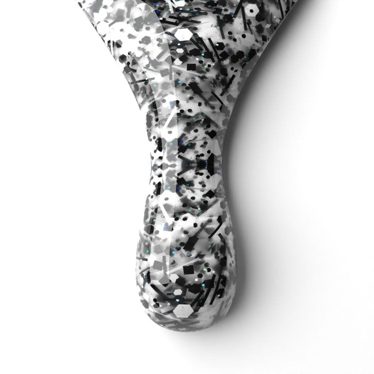 Black Tie Affair - Silver hexes, black and silver glitter w/ striped flecks on clear polish.